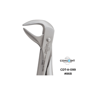The Conodent Figure 86B “Cowhorn” Forceps combine traditional English Pattern precision with a modern anatomical handle design. Specifically engineered to engage the bifurcation of mandibular molars, this instrument uses a specialized wedging action to elevate teeth efficiently while providing the clinician with superior ergonomic comfort.