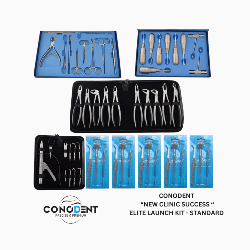 Starting a new dental practice requires reliable, high-performance instrumentation. The CONODENT New Clinic Setup Kit is a curated collection of our most essential, premium-grade instrument sets. Designed for the transitioning associate or the new clinic owner, this comprehensive offer covers diagnostics, extractions, minor oral surgery, and prosthodontic removals—all housed in a professional, cabin-size mobile trolley bag for maximum portability and organized storage.