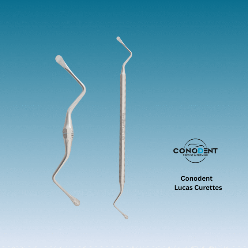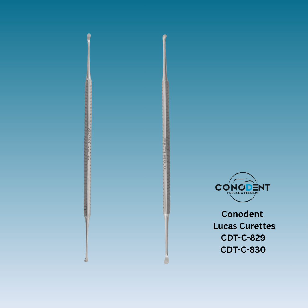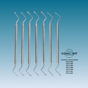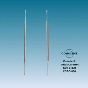 The CONODENT Lucas Curette series is the gold standard for alveolar debridement and cyst enucleation. Designed for rigorous surgical use, these instruments are engineered to remove granulomatous tissue, debris, and cysts from extraction sockets and bony defects. Unlike standard diagnostic tools, the CDT-C-822 to 830 series features a weighted Solid Handle design, providing the necessary momentum and “bite” required for effective bone scraping.