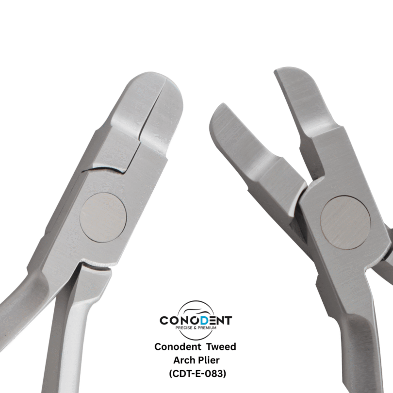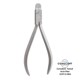 The CONODENT Tweed Arch Bending Plier (Product Code: CDT-E-083) is a fundamental instrument for orthodontic professionals, engineered for the precise manipulation and contouring of archwires. Specifically designed for applying torquing and bending forces, this tool provides the stability and control required for intricate wire adjustments.