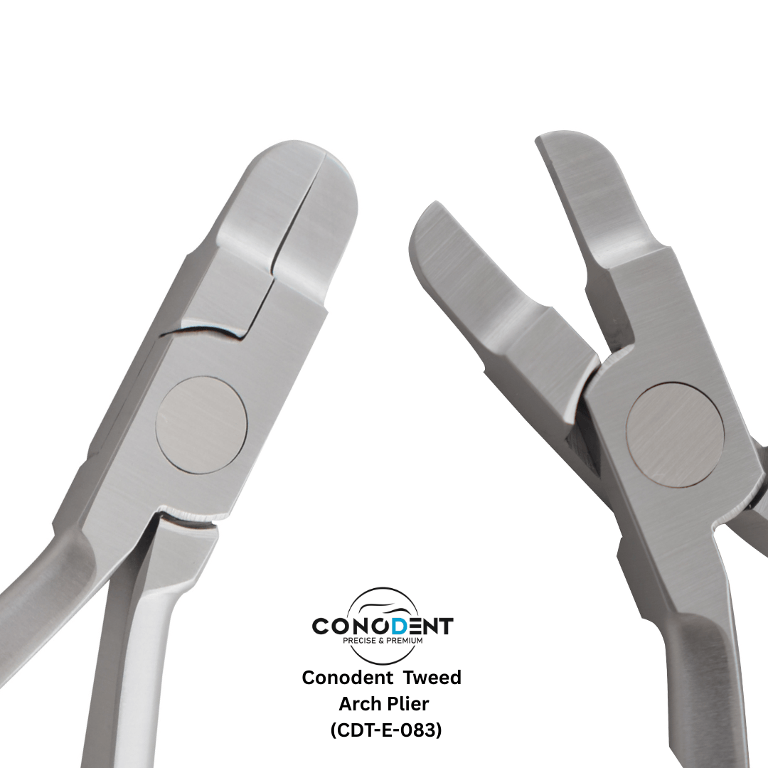 The CONODENT Tweed Arch Bending Plier (Product Code: CDT-E-083) is a fundamental instrument for orthodontic professionals, engineered for the precise manipulation and contouring of archwires. Specifically designed for applying torquing and bending forces, this tool provides the stability and control required for intricate wire adjustments.